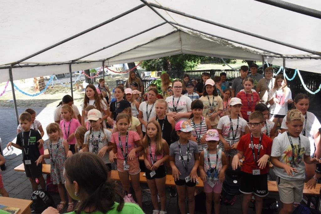 Sklep oratorija je bil v nedeljo pri sveti maši. Sodelovali so udeleženci oratorija s petjem in branjem raznih besedil ter prinašanjem darov. Ob sklepu se je župnik zahvalil animatorjem za njihovo delo. Spomnil je, da je to jubilejni, srebrni ali 25. oratorij v župniji Odranci. V zahvalo so animatorji prejeli knjigo Topla babičina dlan, ki opisuje odraščanje dečka Pejpa in je spodbuda mladim in vsem vzgojiteljem, da bi še bolj zavzeto skrbeli za otroke in mlade, ki iščejo pot v življenje. Prejeli so še čokolado v posebnem ovitku. Donatorjem in vsem dobrotnikom sta se zahvalili voditeljici oratorija Eva Kavaš in Nika Dominko. Po maši je sledilo druženje pred cerkvijo ob dobrotah, ki so jih že prejšnji dan pripravili starši.