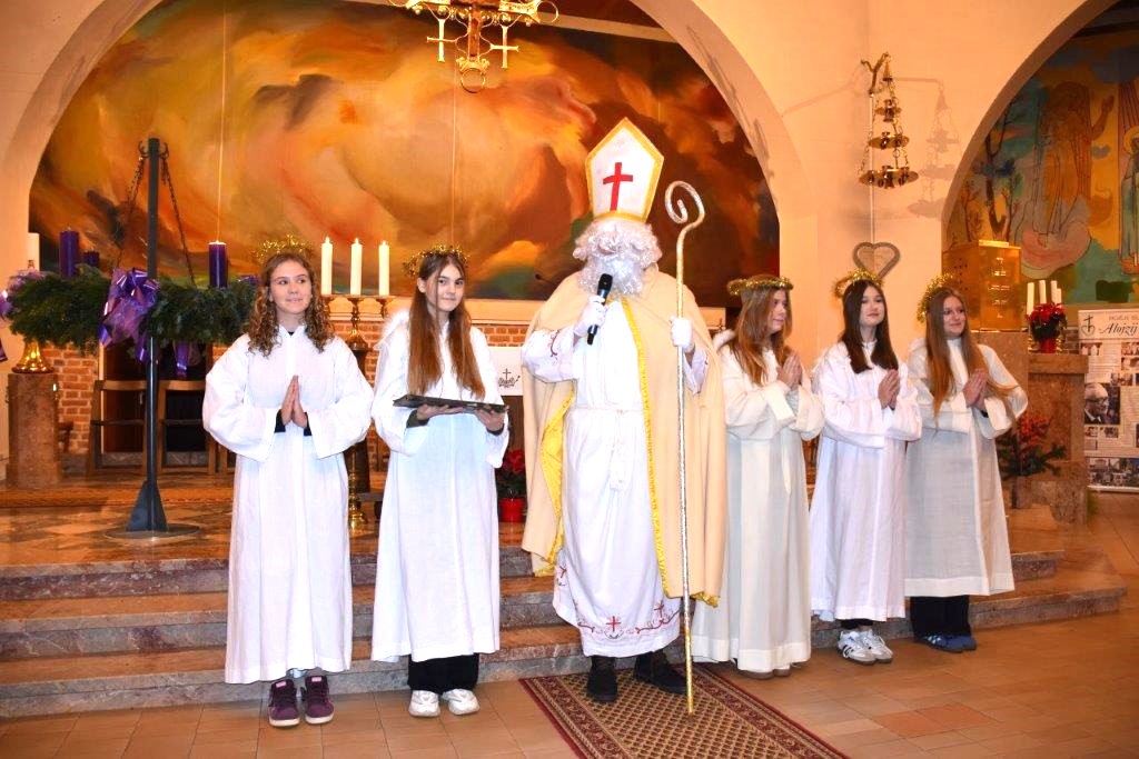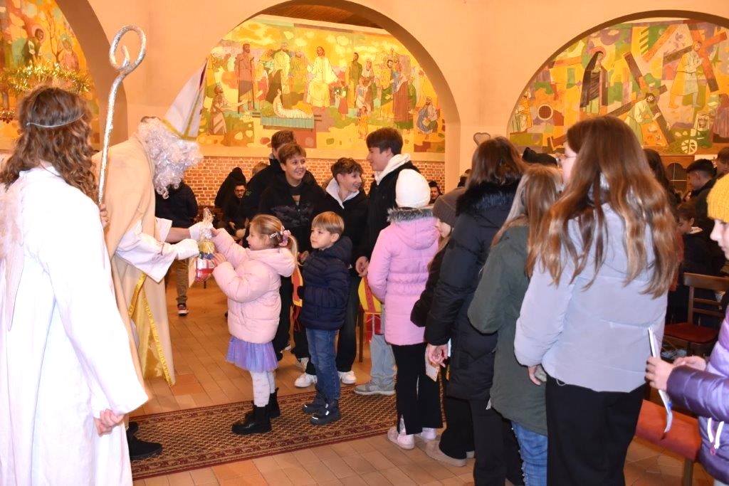 Po sveti maši je zbrane otroke in starše nagovoril Miklavž, ki je v spremstvu angelov vstopil v cerkev. Ker je o njih dobil samo dobra poročila, jim je razdelil nagrade, tudi knjižico o še enem Nikolaju, Junaku s peresom, ki je pred več kot dvesto leti našim prednikom pripravil prvo knjigo in nato še šest drugih za šolo, cerkev in dom. Otroci so Miklavžu izročili mitre, škofovske kape, ki so jih doma izdelali in bodo krasile božično drevo v cerkvi. Miklavžu so pomagali pripraviti darila člani Župnijske karitas, ki so tako pokazali, da sledijo svetemu Miklavžu, da tudi oni delajo dobro.