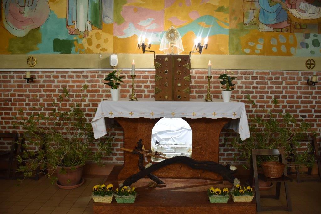 Velikonočno praznovanje se je začelo na veliki četrtek z večerno sveto mašo, pri kateri smo se spomnili Jezusove zadnje večerje in postavitve svete evharistije, mašniškega posvečenja in Jezusove nove zapovedi ljubezni. Na veliki petek smo bogoslužje obhajali ob uri Jezusove smrti, torej ob treh. Zapeli smo pasijonsko pesem o Jezusovem trpljenju, počastili sveti križ in prejeli obhajilo. Na veliko soboto smo se ves dan zbirali pri Božjem grobu k molitvi. Ob dvanajstih so pri molitvi na poseben način sodelovali šolarji. Ob petih se je cerkev povsem napolnila, saj je bil blagoslov velikonočnih jedil. Sledila je velikonočna vigilija, ko smo zapeli aleluja in se veselili Jezusove zmage nad smrtjo. Na velikonočno jutro smo se v procesiji odpravili po vasi in tako tudi na viden način izpovedali svojo vero v Jezusovo vstajenje. Poleg pevcev so sodelovali člani ceha, pritrkovalci, ministranti in drugi bogoslužni sodelavci. Sledila je sveta maša, pri kateri so peli pevci zbora Neuničljivo upanje. Pri maši ob pol enajstih so peli pevci otroško-mladinskega zbora. Kristus je vstal in živi – radujmo in veselimo se ga.